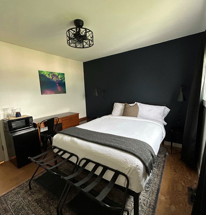 Welcome to your cozy retreat! This thoughtfully designed room features a plush queen-sized bed, promising a restful and rejuvenating night's sleep. A mini fridge and microwave add a touch of convenience for your favorite snacks and beverages. With access to a shared guest kitchen stocked with the essentials, this space is ideal for all kinds of guests, whether you're a couple looking for a romantic getaway or a contractor in need of a practical stay.